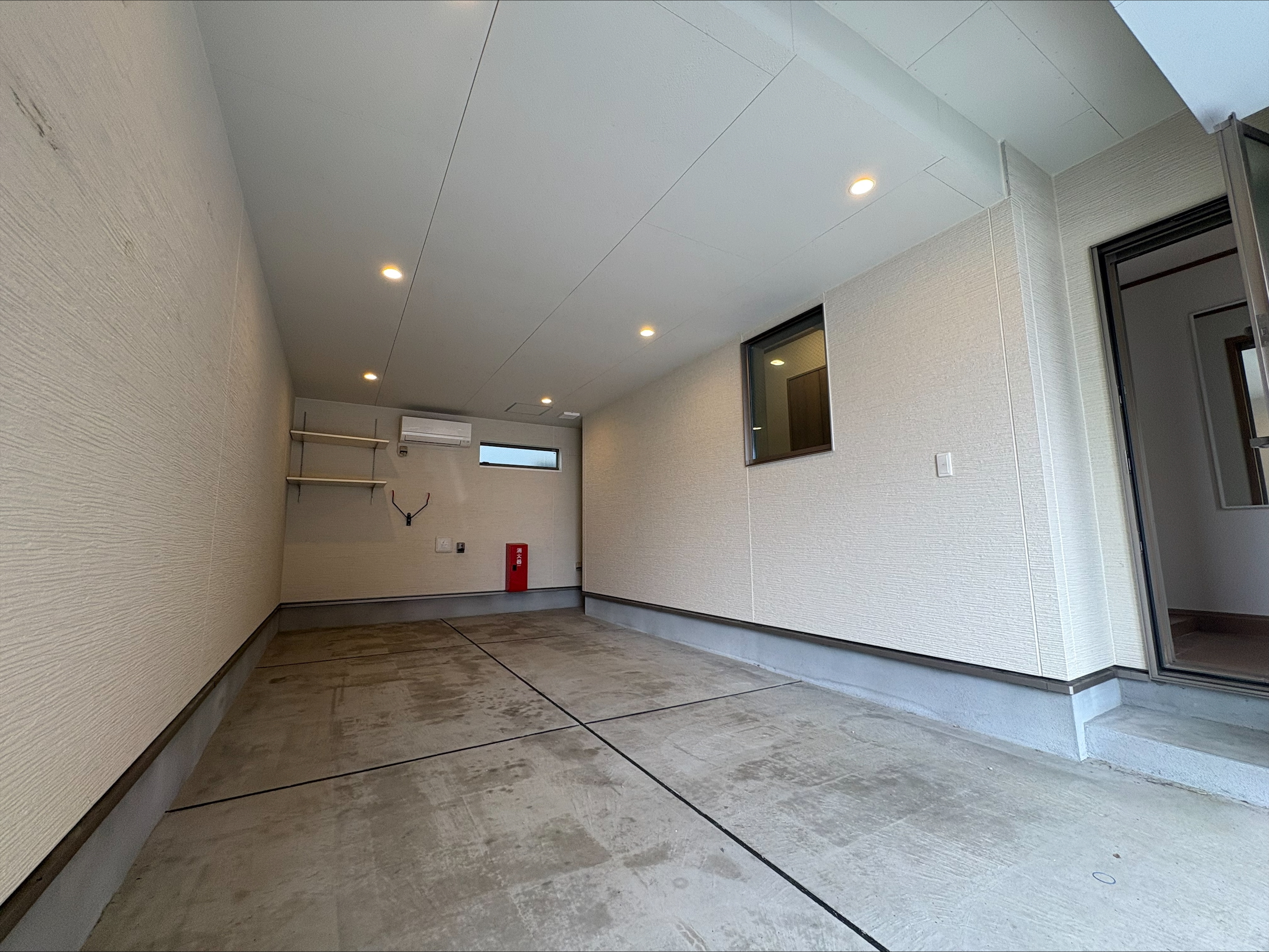 ガレージ設備ガレージ電動シャッター、EV専用充電コンセント、多目的流し、ガレージ内エアコン